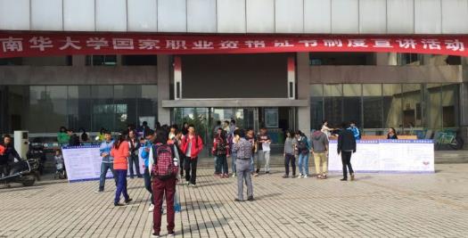 为大力推行国家职业资格证书制度,加快技能人才队伍建设,更好地服务我校学生就业和经济社会发展,贯彻执行湖南省人力资源和社会保障厅职业技能鉴定中心下发的《关于开展2015年国家职业资格证书制度宣讲活动的通知》(湘人社鉴函〔2015〕5号)文件,2015年10月11日上午继续教育学院在DUOBAO多宝|官方网站第1教学楼前坪举办了国家职业资格证书制度宣讲活动。活动通过在校园布置宣传横幅、摆放展架、发放相关宣传资料、现场问卷调查方式进行,让学生更多的了解了国家职业资格制度。